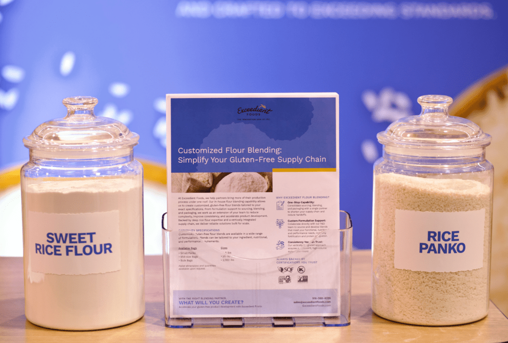 At Expo West this year, Exceedient Foods introduced a new capability designed to help meet that need: customized gluten-free flour blending. Our in-house blending capability allows us to create tailored gluten-free flour blends built around each partner’s specific formulation and performance goals. Whether brands need support with functionality, nutrition targets, or ingredient sourcing, our team works alongside them to develop blends that perform exactly as intended.